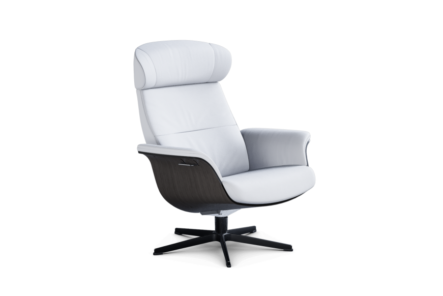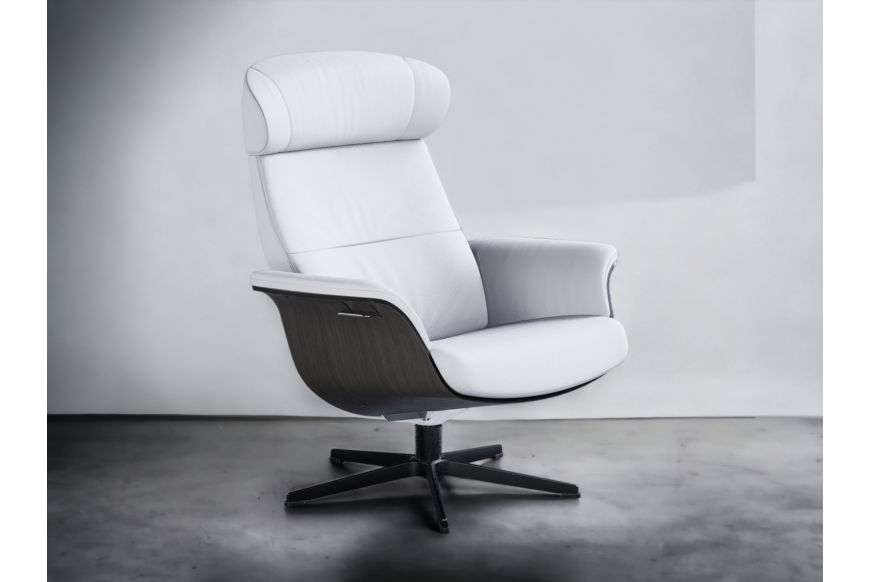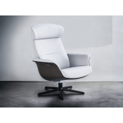 Komfortabel lænestol i semianilin læder og skald i sortbejdset eg med swingback funktion. Fås også i stof.