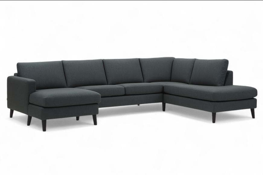 Elegant byggesystem. U-sofa. Fås i mange typer stof og læder, samt i flere størrelser.
