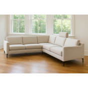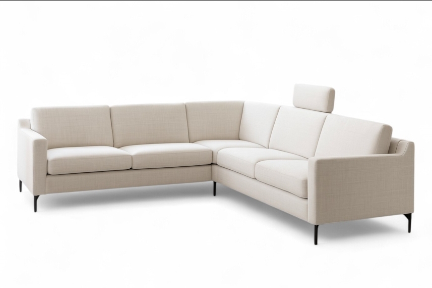 Elegant byggesystem. Hvid hjørnesofa. Fås i mange typer stof og læder, samt i flere størrelser.
