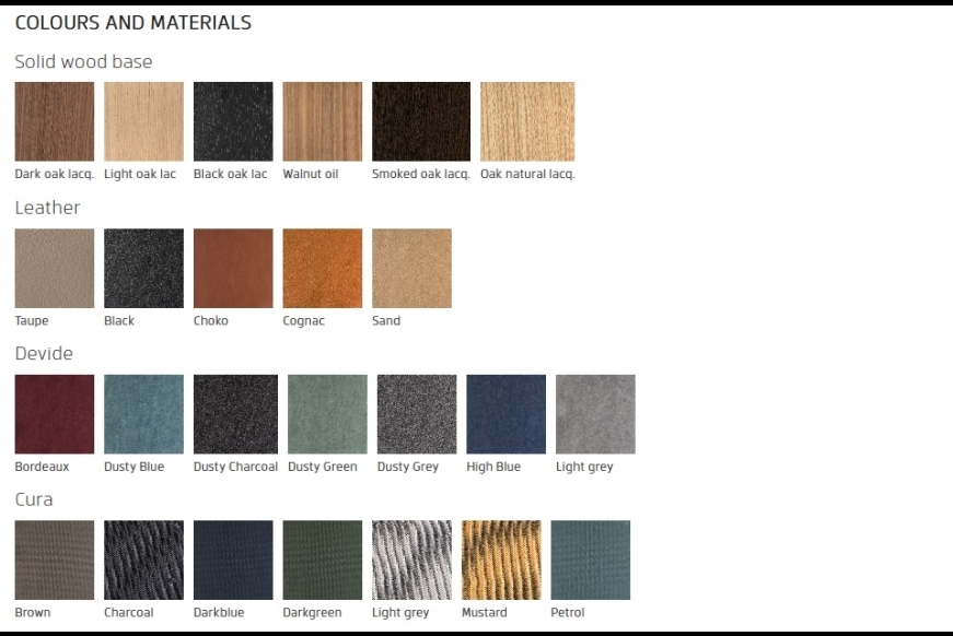 Stolen kan fås i lys eg lak, mørk eg lak, sort eg lak, natur eg lak eller valnød, prisen variere alt efter hvilken type der vælges, spørg gerne og vi finder netop den stol, der passer bedst hjemme hos dig.