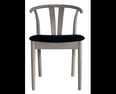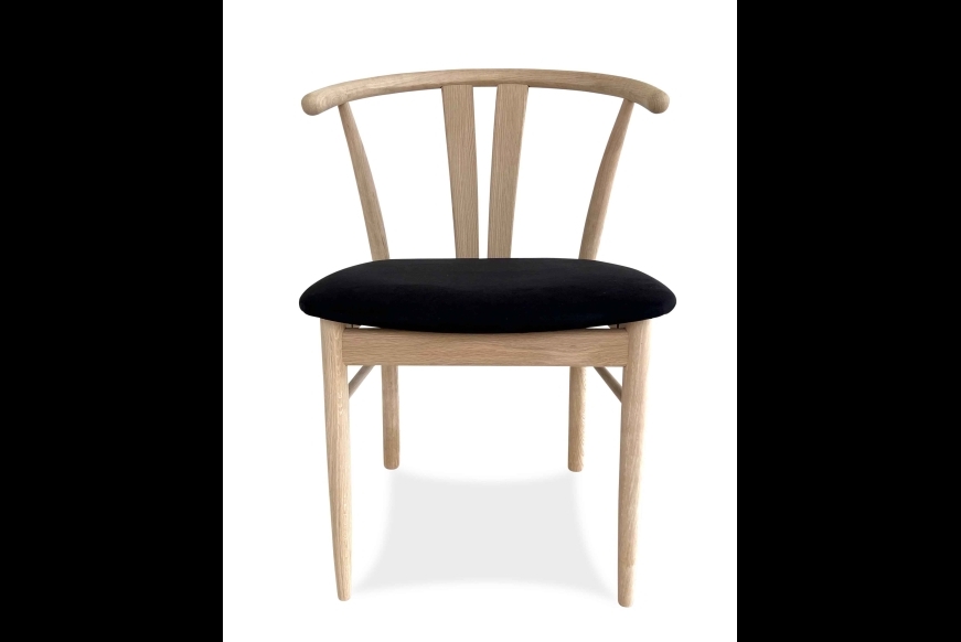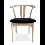 Enkelt og tidsløs spisestuestol i massiv træ med sort lædersæde. Stolen har afrundet ryg, hvilket giver en behagelig siddekomfort. Maja er en enkelt og stilren designet stol, som passer i ethvert hjem.