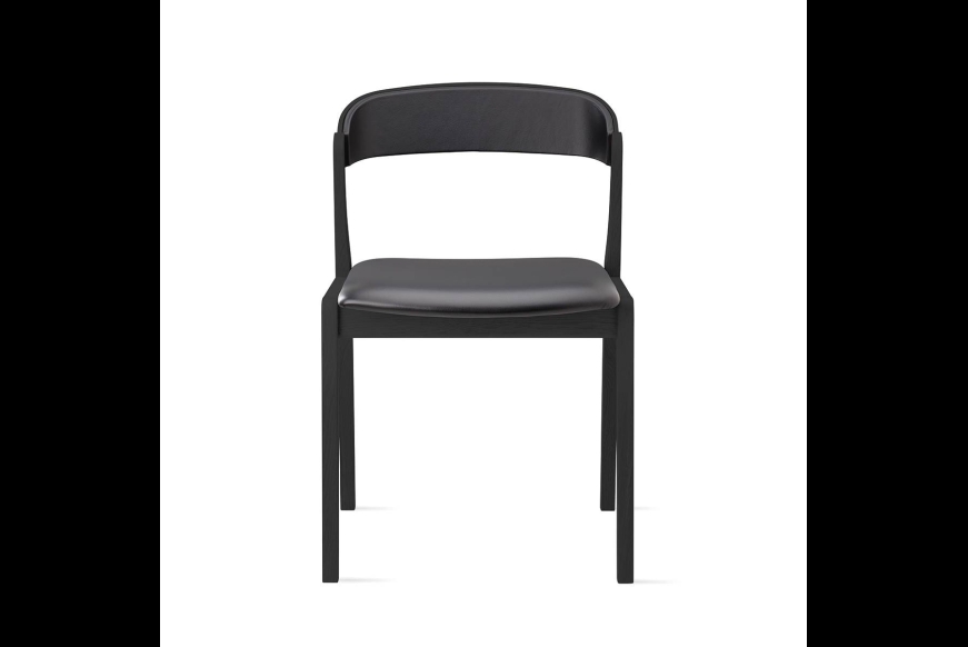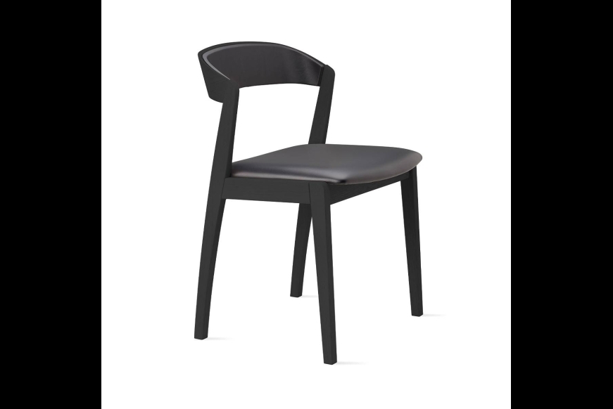 Dansk produceret spisestol med stel i sortbejdset massiv eg. Sædet er med sort semianilin læder.