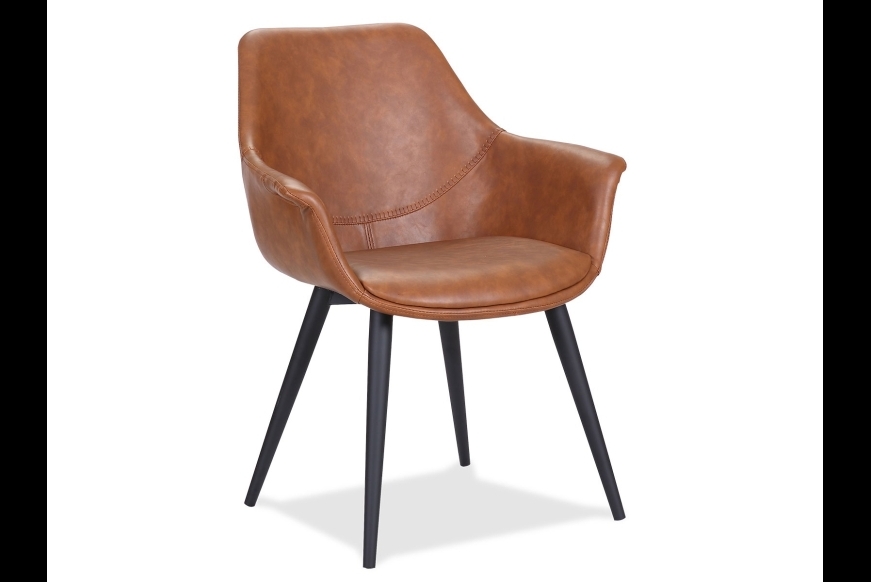 Elegant of komfortabel Spisestuestol, vist i cognac læderlook.