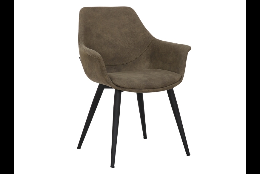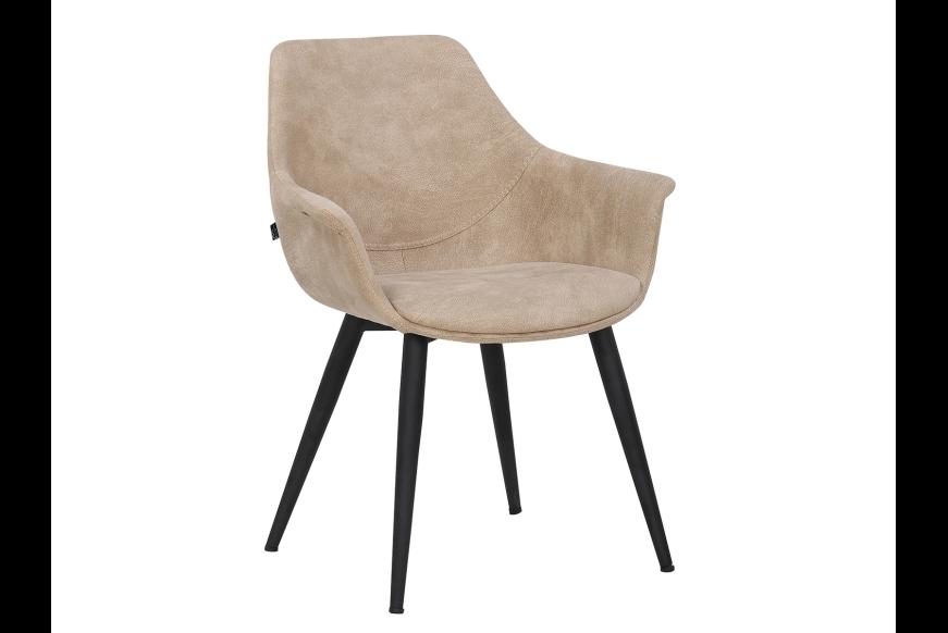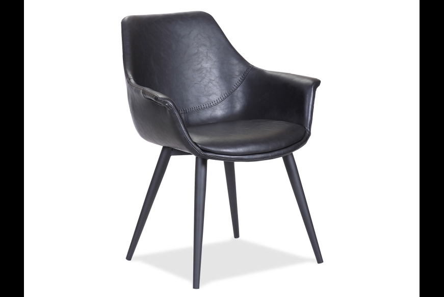 Den flotte stol er kan betrækkes med enten stof eller læderlook, og i mange forskellige farver.