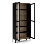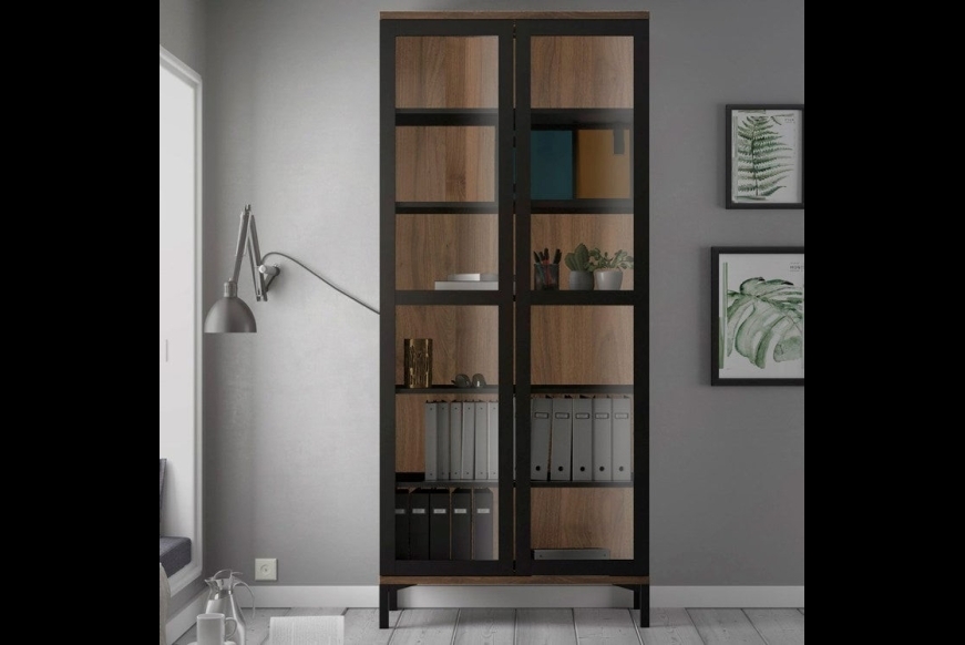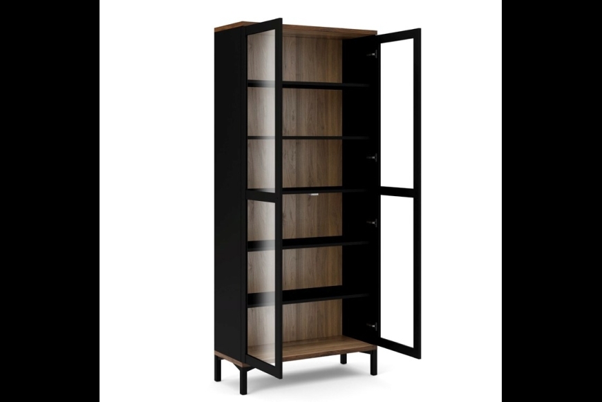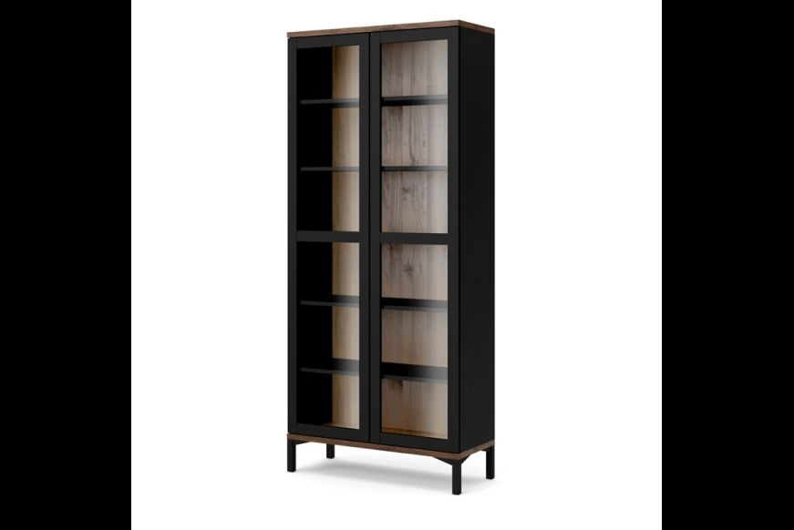 Klassisk vitrine med to glaslåger. Sort / Valnød