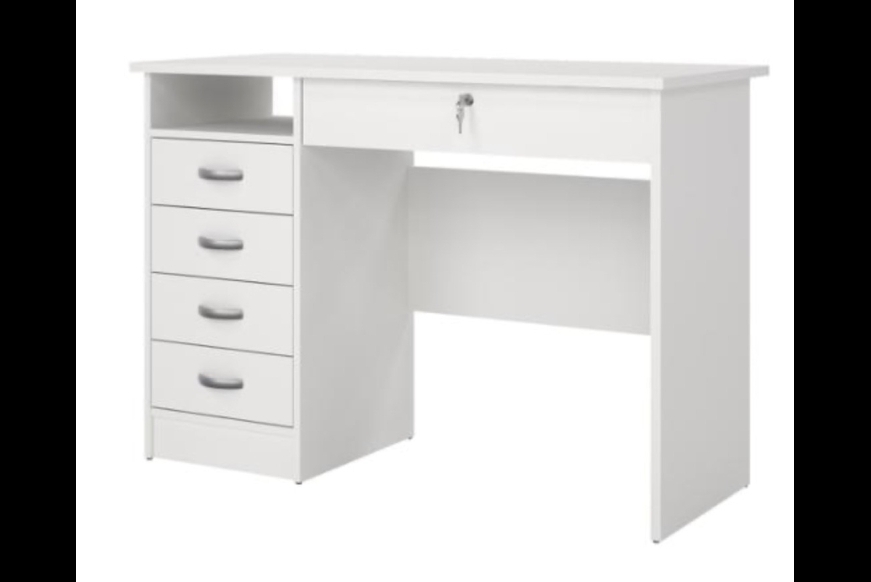 Info: Function skrivebord med 4 skuffer 1 af dem med låsMål: B: 109 x D: 49 x H: 76 cm
