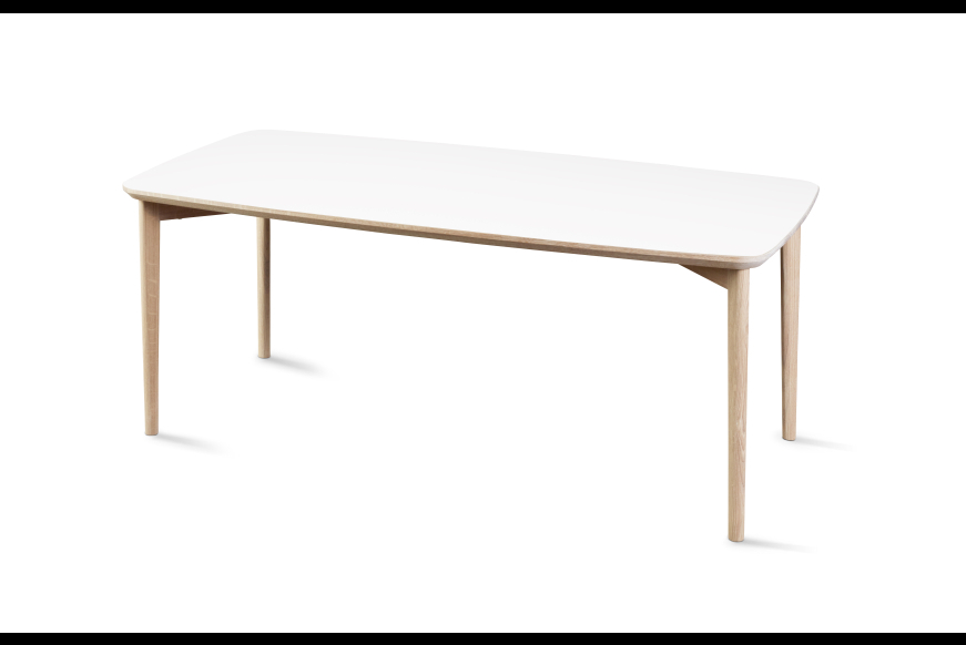 Skovby sofabord, med hvidolieret ege stel og hvid HPL Laminat bordplade.
