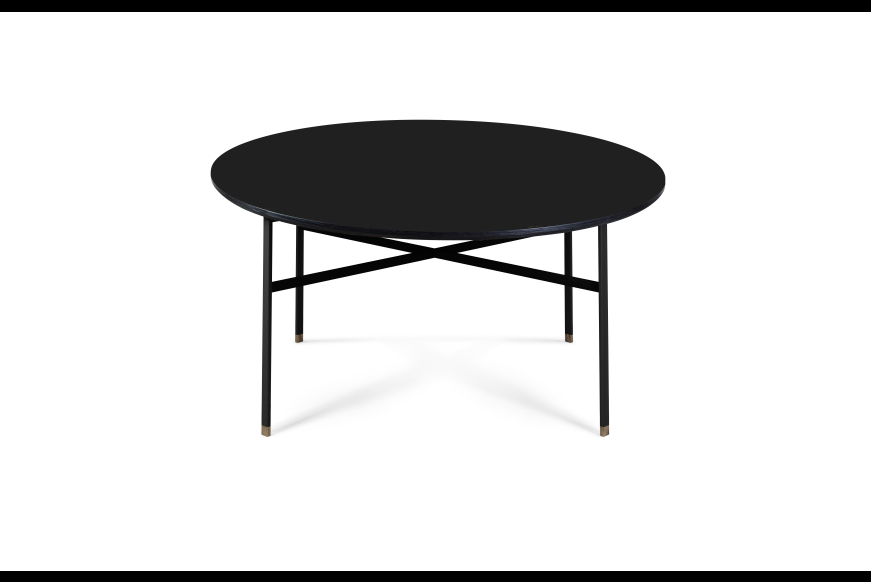 Skovby Ø90 cm sofabord, med massiv sort egetræs stel og sort Nano bordplade..