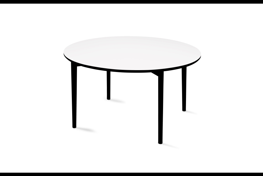 Skovby Ø90 cm sofabord, med sort ege stel og hvid HPL Laminat bordplade