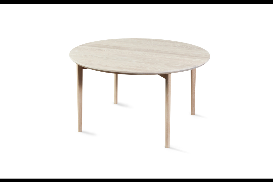 Skovby Ø90 cm sofabord, med massiv hvidolieret egetræs bordplade.