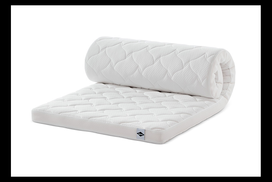 Behagelig og lækker topmadras, hvor betrækket er lavet i et temperaturregulerende strik materiale med 3D bånd i siderne. Vaskbart betræk. Kernen kan der vælges mellem en 50mm latex, som er et åndbart naturprodukt eller en 50mm memory foam, som former sig efter varmen fra kroppens trykpunkter eller en 65mm ergo+, som er en blød og støttende skum - vælg hvilken under variant.