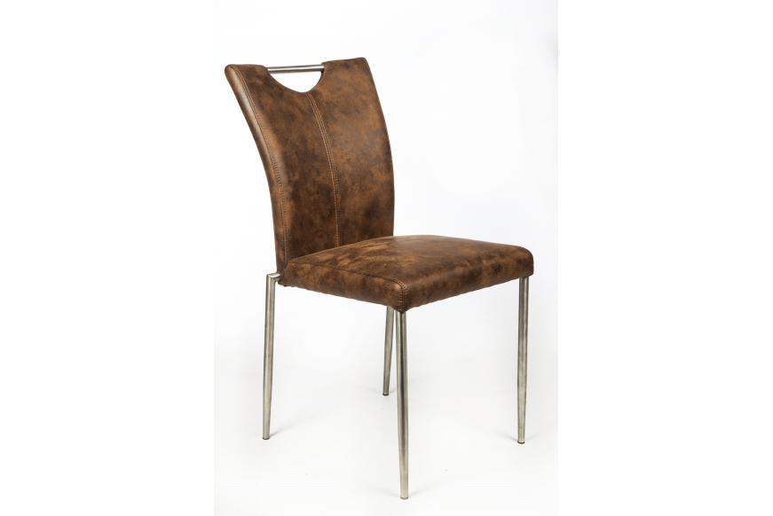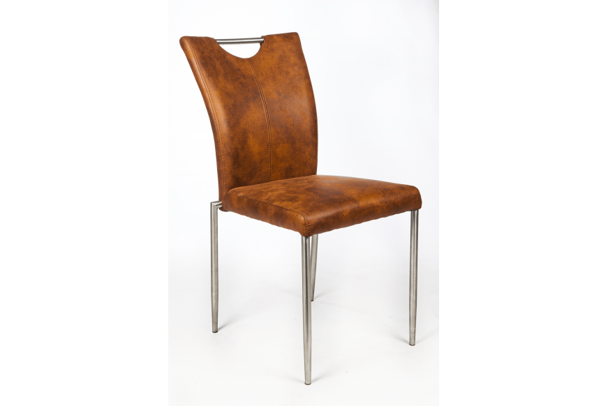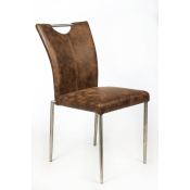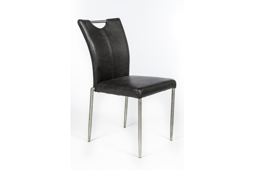 Flot og enkel spisestuestol med stålhåndtag i ryggen. Flere farver