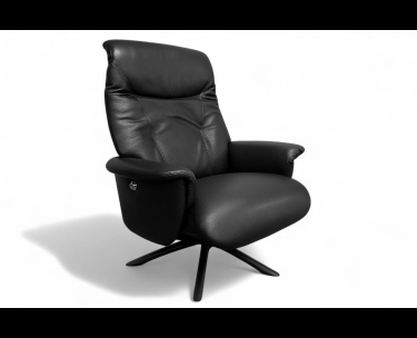 Flot og elegant lænestol med indbygget fodskammel. Med blødt tekstil og flot udført formspændt træsider.