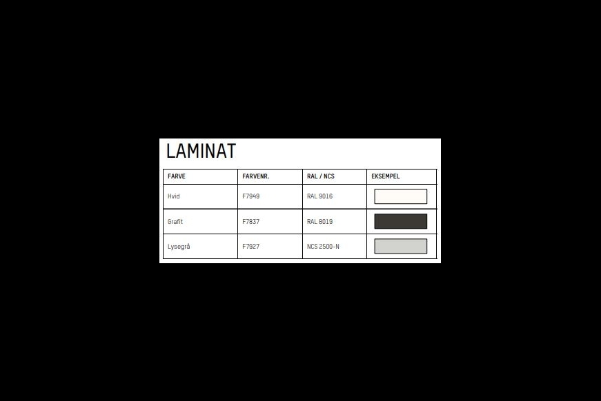 M ulighed for forskellig farve topplade - hvid, lys grå eller grafit laminat eller sort, beigegrå, flaskegrøn, bordeaux linoleum.