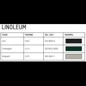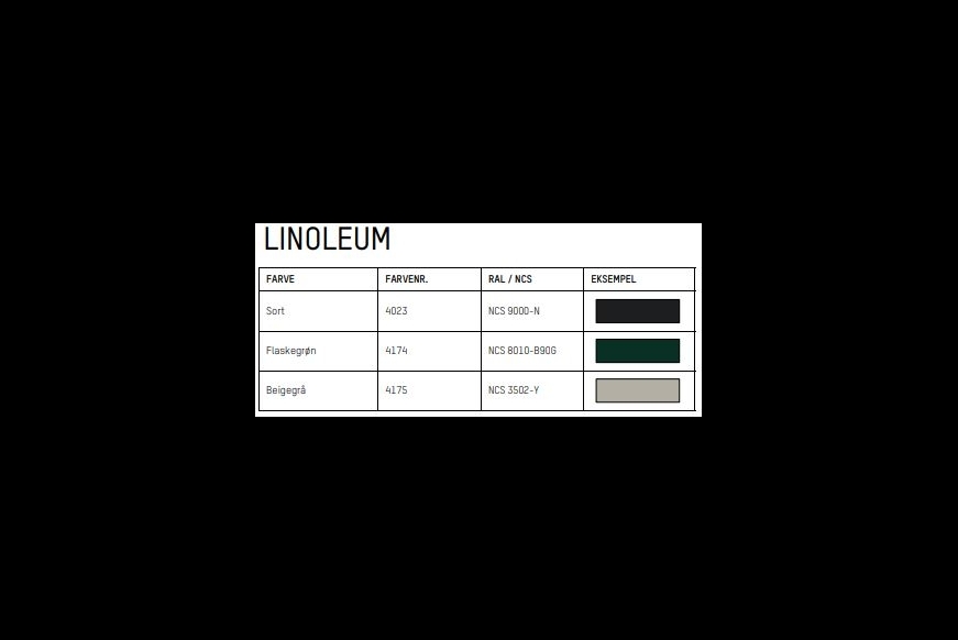 Bordet kan fås i 3 forskellige farver laminat samt 4 forskellige farver linoleum