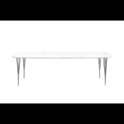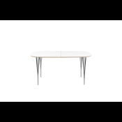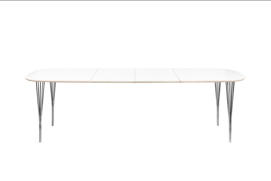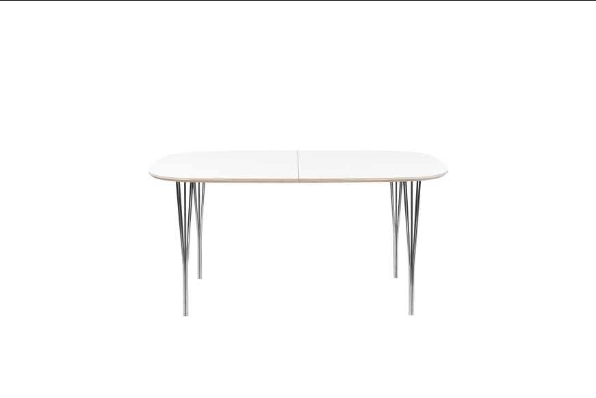 SYMPHONY  fra Haslev er et bord med mange muligheder. Flot ovalt formet spisebord med træudtræk. Bordet er vist her i hvid laminat uden kantbehandling og med chrome ben. Der er mulighed for at vælge anden farve under variant. Bordet kan også fås med en sort kantbehandling mod et tillæg, skriv det i kommentarfeltet ved bestilling eller leveres bordet uden kantbehandling.