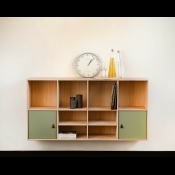 Reolen leveres i 12 mm massiv eg og med sorte MDF elementer, for at bevare det lette og elegante look. Alle reoler er forsynet med ophængsliste så de kan hænges på væggen. Stålben og hjul kan tilkøbes. Du kan kombinere din helt egen reol på vores byggesystem, så den passer præcis til dit behov.