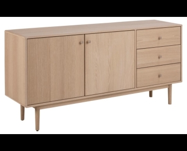 Materiale: Hvidpigmenteret egefinér m. massive ben.