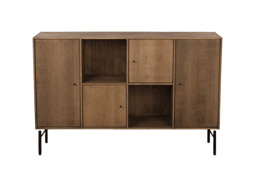 Smuk massiv lys røget egetræs skænk, med 2 store låger og 2 små låger. Med elegante fingertapede hjørner. Fås i et utal af kombinationer.