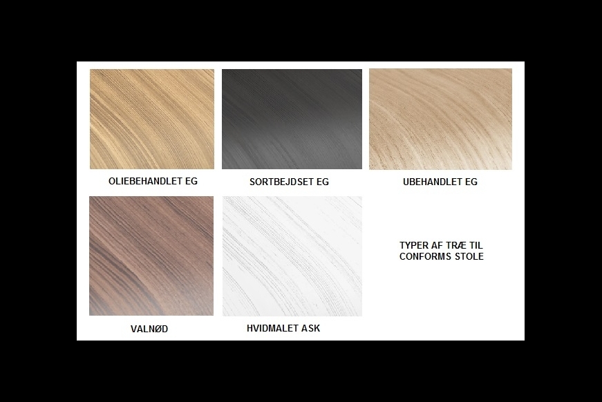 Conforms stole er lavet med formstøbt koldskum, og kan betrækkes med en flot vifte af både stof og læder, som alle er af høj kvalitet.