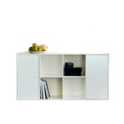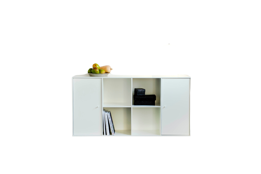 Klassisk og smuk hvid lakeret skænk med 2 store låger. Med ophæng til væg. Fås i et utal af kombinationer.