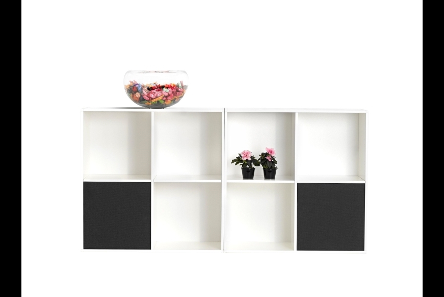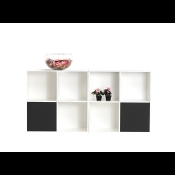 Klassisk og smuk hvid lakeret skænk med 2 små sorte låger. Med ophæng til væg. Fås i et utal af kombinationer.