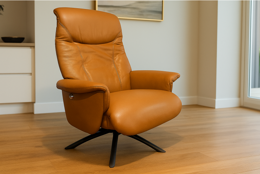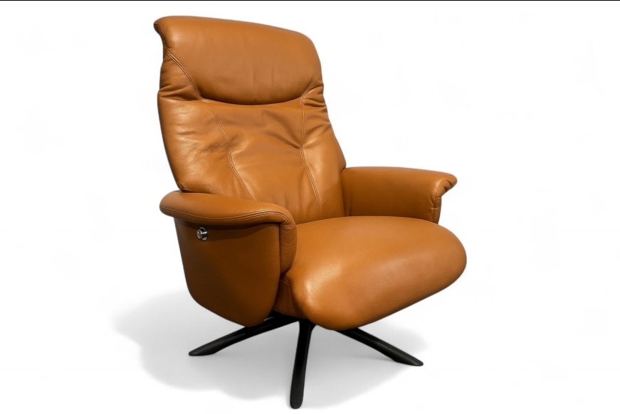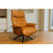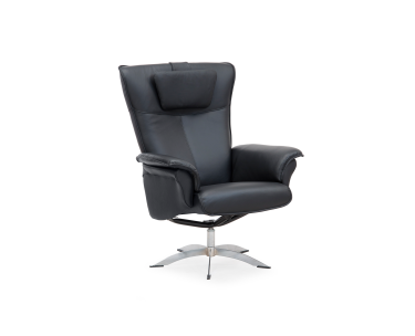 Flot og komfortabel lænestol med en kraftig semianilin læder monteret. Med gassystem til regulering af ryg. Skammel kan tilkøbes.