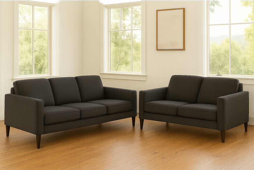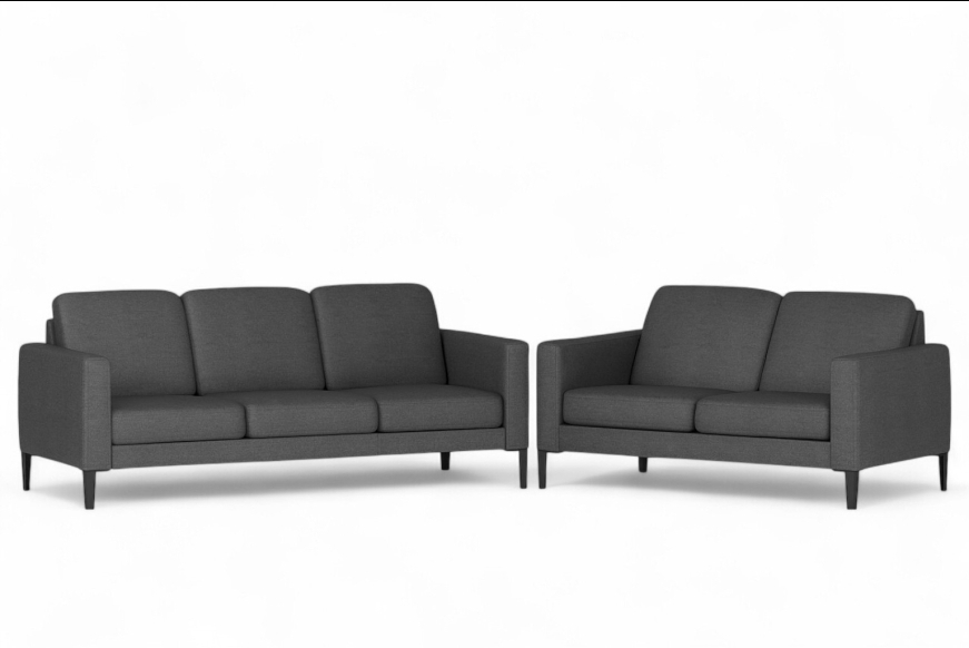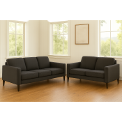 Stilrent sofasæt i høj kvalitet. Lækkert stof. Fås også i læder. Fås i flere størrelser. SÆT PRIS