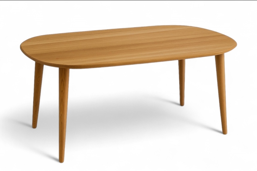Design dit eget sofabord. Vælg mellem 2 former, 3 farver m.m. Olieret egetræsbord med olieret egetræsben.