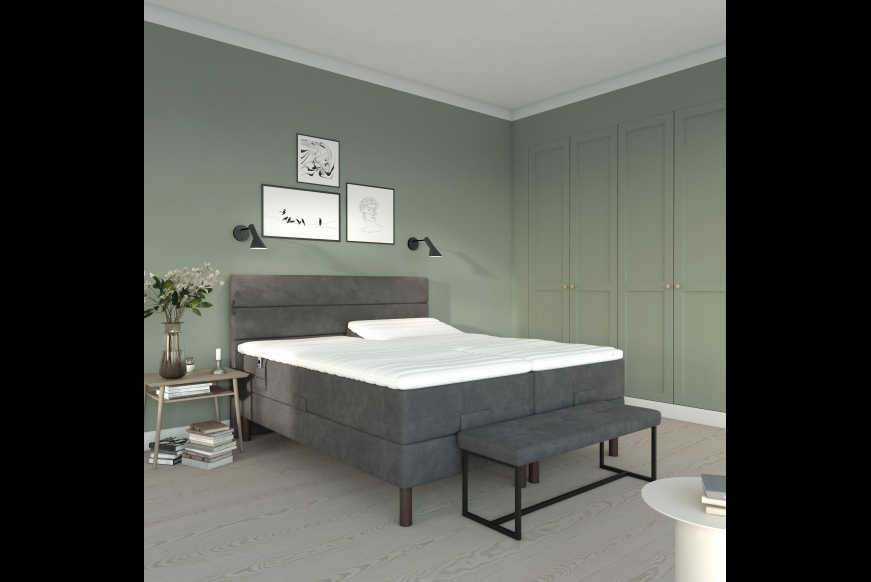 Fås i to hårdheder. Bunden hæves af en stærk Okin BL motor med trådløs betjening. Motoren har nat belysnings funktion, og fjernbetjeningen har en lille lommelygte.