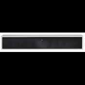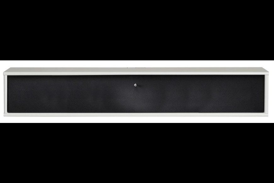 Let og elegant tv møbel i snehvid. Med stof klap i sort, som lyd og signal let går igennem.