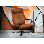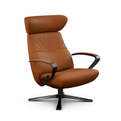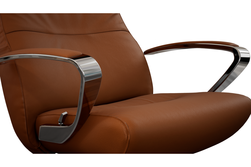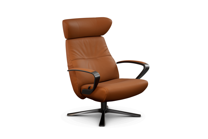 Smuk og moderne lænestol med et hav af muligheder indenfor farvevalg, læder, stof, højde samt understel. Med swingback.