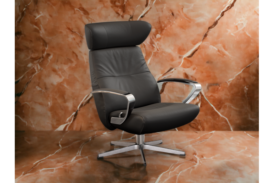 Smuk og moderne lænestol med et hav af muligheder indenfor farvevalg, læder, stof, højde samt understel. Med swingback.