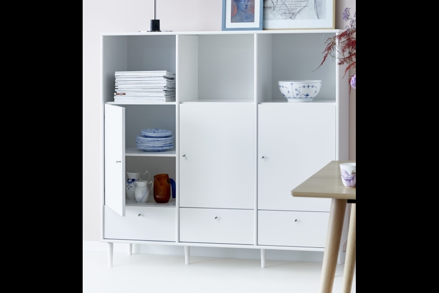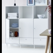 Elegant høj skænk med 3 låger og 3 skuffer. Til STÆRK PRIS gælder det kun den hvide kombination.