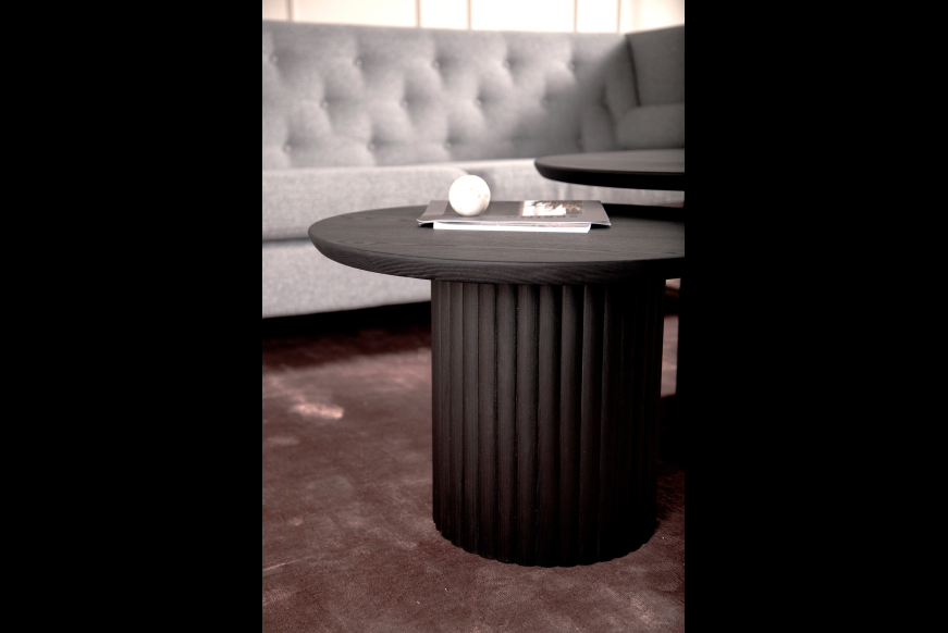 VELVET fra Kristensen & Kristensen er en moderne serie med et retro look. Det moderne formsprog komplimenteres af smukke håndlavede detaljer - en hyldest til de gamle håndværkstraditioner. Sofabordene er vist her i massiv sort olieret eg.