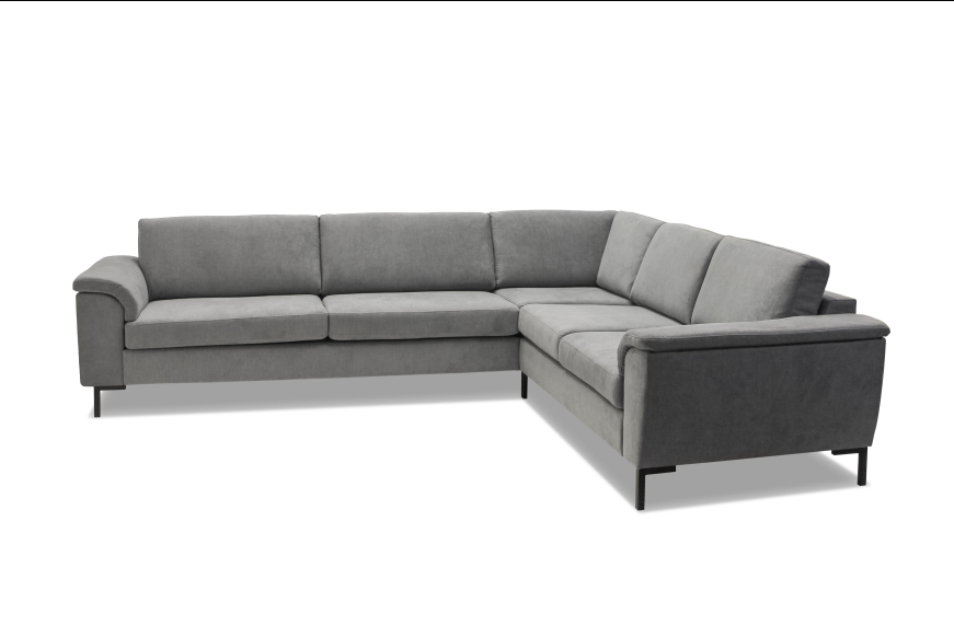 KINGSTON sofaen står her i en klassisk hjørne opstilling, som passer perfekt ind i det traditionelle hjem. Sofaen er polstret med et slidstærkt stof, som kan bestilles i andre farver.