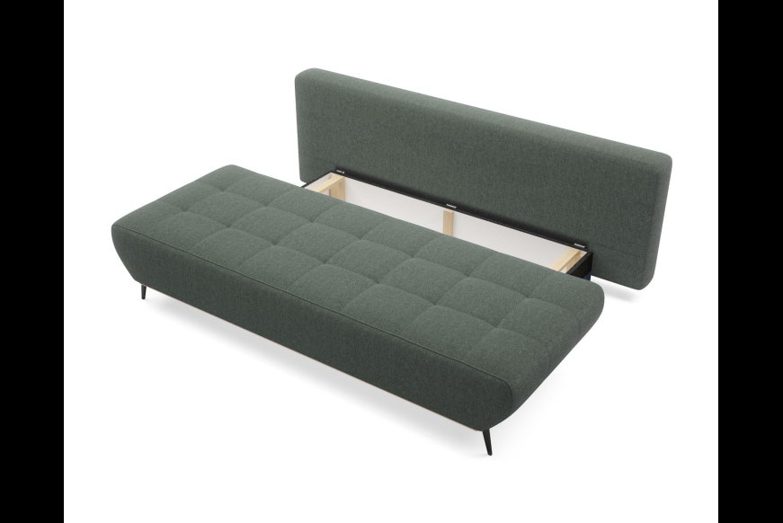 Kvalitets sovesofa med stort magasin og kraftige posefjedre med koldskum i begge madrasser.
