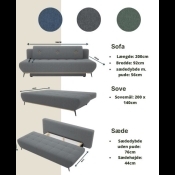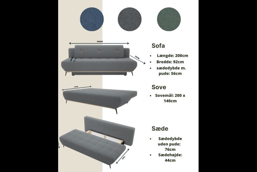 Info: Moderne sovesofa.Mål: 92 x 200 cm / Udslået sovemål: 140 x 200 cm