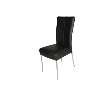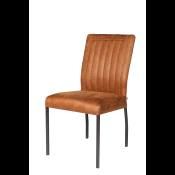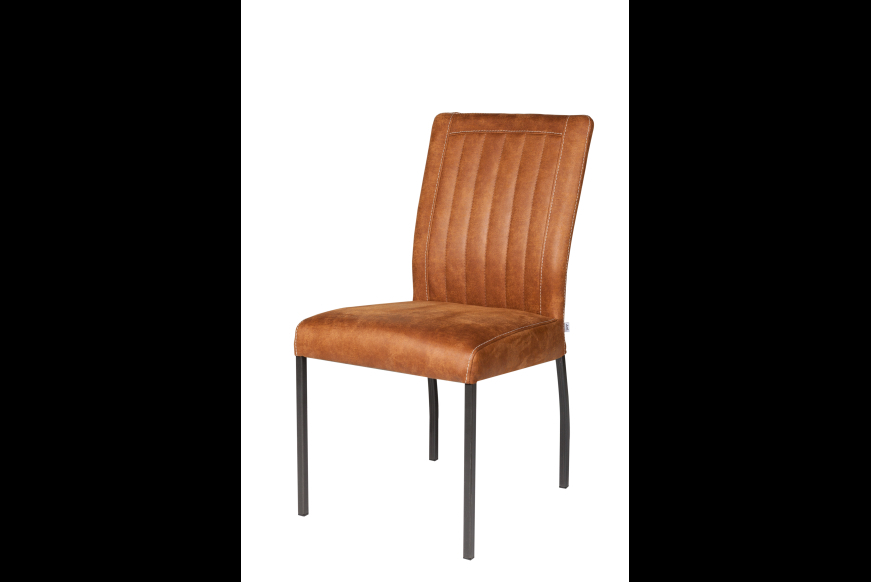 CAR er en traditionel spisebordsstol med cognac mikrofiber med sorte metalben. Stolen giver en andet udtryk, med rillerne i ryggen, end de fleste andre traditionelle stole.