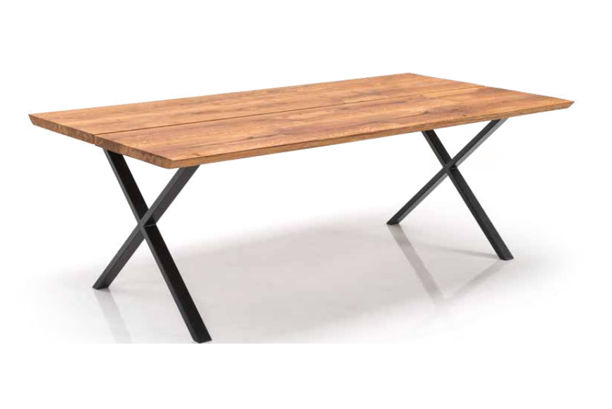 Hanstholm er et moderne, nordisk-inspireret spisebord med smalle stave. Det rå, naturlige træ-look er utrolig populært og kan sættes sammen i enhver indretning. Hanstholm spisebordet er med massiv 40 mm egetræ, som står smukt til det sorte metalstel. Det flotte metalstel i skrå ben eller krydsben giver en kontrast til det rustikke spisebord.Med en længde på 220 cm og 110 cm bredde får du rigeligt med plads ved spisebordet, og der er rig mulighed for, at hele familien kan samles til en hyggelige middage. Du kan påsætte en 50cm tillægsplade i hver ende, så bordet skal forlænges til middagsselskaber.