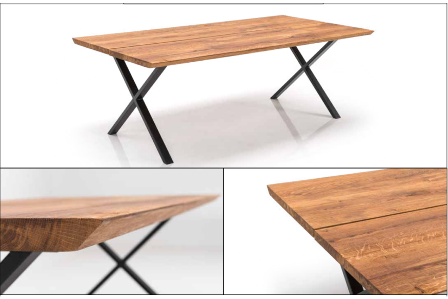 40 mm bordplade i egetræ med sort metalstel. Vælg mellem flere træsorter, kantudskæringer og priser D/L: 220 H: 75 B: 110