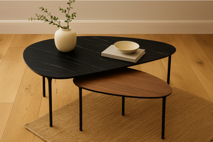 Design dit eget sofabord. Trekantede sofaborde. Højtrykslaminat.