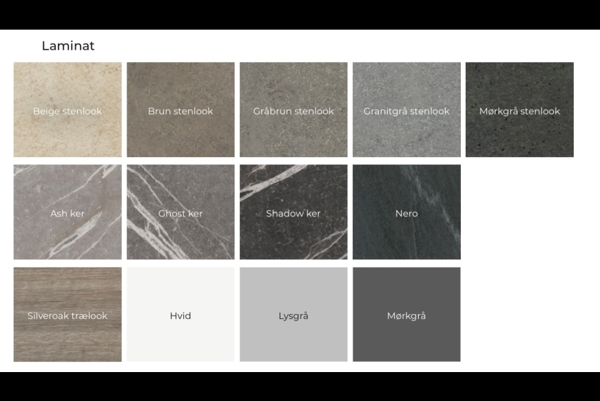 13 forskellige Højtrykslaminatplader.