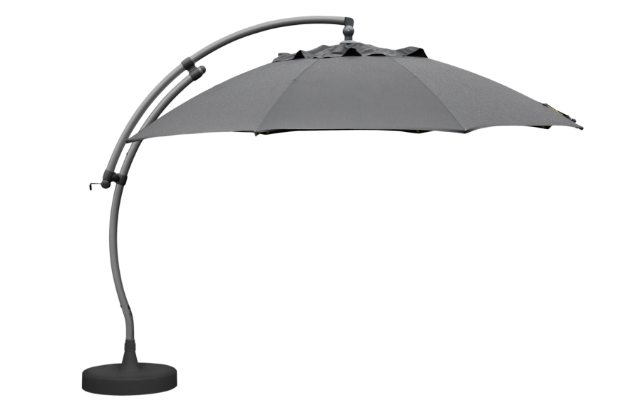 Easy sun er en massiv frithængende parasol med en diameter på 3,75 m. Stativet er lavet af aluminium og baldakinen er lavet af slidstærkt olefin med vindklap.