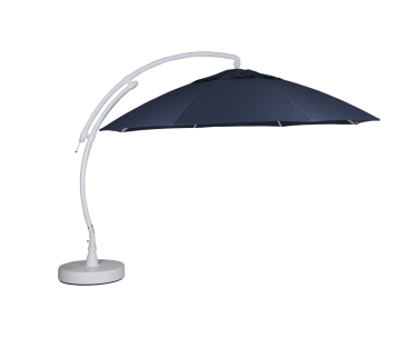 Frithængende parasol. 250 g polyester og aluminium stativ med håndsving og trinløs betjening. Tværben medfølger og skal forankres med parasolfodsvægte eller lignende.