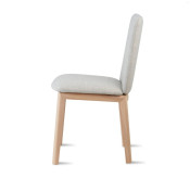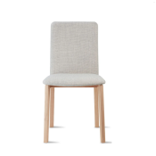 Det tidløse og holdbare understel i massivt træ bærer det fyldige sæde, der er beklædt med tykt skum som giver ultimativ komfort. Stolens træstel og det buttede sæde er rundede og giver stolen et blødt udtryk i både form og fornemmelse.