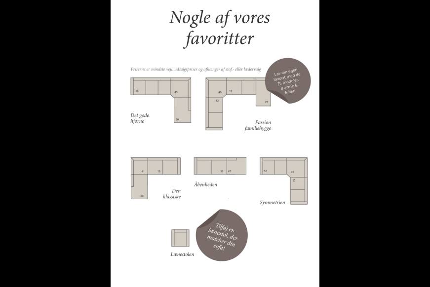 PASSION er et system der lader dig skræddersy din nye sofa. Med de mange forskellige muligheder for siddekomfort, er systemet designet til at kunne passe til enhver. Med helt fine detaljer, og mange forskellige moduler at vælge mellem, samt et hav af stof- og læder muligheder.