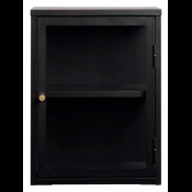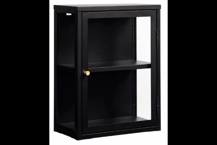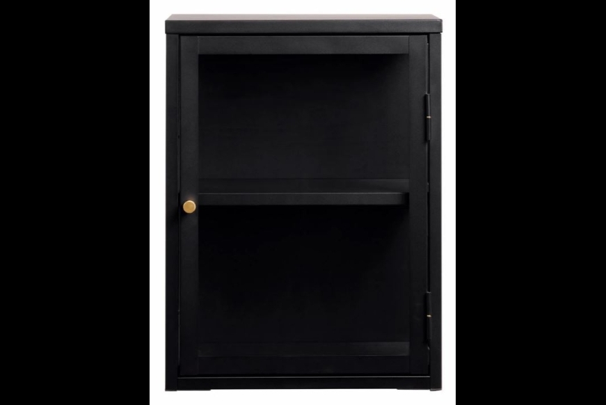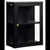Flot væghængt skænk i 1 sektion med sort metal og glas i front og siderne.