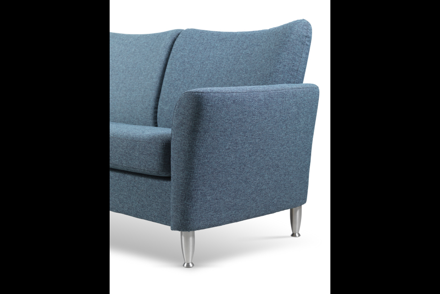 Brunstad Systemplus er en modulsofa som kan laves i mange mål og former. Det lidt specielle ved denne sofa er at sædedybden ikke er så dyb og giver derfor god komfort til folk som ønsker mere at sidde i deres sofa end at ligge. Sofaen kan polstres i læder eller stof. Her vist med Julia armen, som er et moderne skrå armlæn.