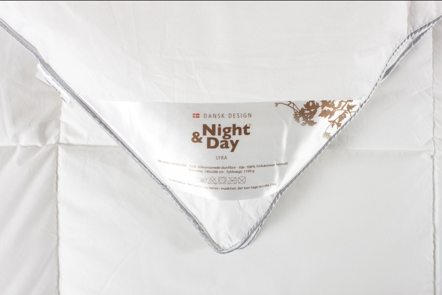 LYRA er en luksuriøs fiberdyne fra Night & Day, som kan bruges hele året. Den består af dunlignende fyld af silikoniserede fiberdun, der gør dynen blød, let og fyldig. Den er syet ind i et ekstra fint og blødt bomuldsvår.